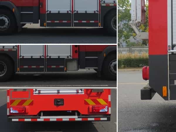 德國曼壓縮空氣泡沫消防車 JDF5160GXFAP40型壓縮空氣泡沫消防車,采用德國曼恩商用車股份公司生產(chǎn)的TGS41.480 消防車底盤改裝而成。整車由消防員乘員室和車身兩大部分組成,乘員室為原裝排半駕駛室,可乘坐2人,該車為內(nèi)藏罐結(jié)構(gòu),車身前部為器材箱,中部為水罐,水罐兩側(cè)為器材箱,后部為泵房。載液罐體為304不銹鋼,與底盤采用彈性連接,后伸:150mm;罐體總?cè)莘e:19.631立方米,水罐容積:11.2立方米,水罐尺寸(mm):3160×2480×1500,B類泡沫液罐容積:8.431立方米,B類泡沫液罐尺寸(mm):2375×2480×1500;ABS生產(chǎn)企業(yè)為KNORR,型號為0 486 106;側(cè)面防護及后下部防護裝置材料材質(zhì):Q235,整體式結(jié)構(gòu);后下部防護裝置離地高度:495mm;主要專用裝置有壓縮空氣泡沫系統(tǒng),消防炮.,裝備了德國邁凱生產(chǎn)的MicroCAFS3000型消防車用壓縮空氣泡沫系統(tǒng),額定壓縮空氣泡沫流量50L/S,可支持8支400L/min流量的CAFS泡沫槍同時作戰(zhàn);沿消防樓梯往上鋪設(shè)380M水帶,支持2支400L/min流量的水槍使用CAFS同時滅火作戰(zhàn),末端槍口壓力5bar。廣泛應(yīng)用于地下、石油、化工、大型商場、高層住宅、重點文物、車站碼頭等。特別節(jié)省水和泡沫液,高效環(huán)保,而且不會造成二次傷害。該系統(tǒng)操作簡單,免維護,一鍵即可出CAFS,使用完后無需對泡沫泵進行清洗。
